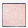 fular cuadrado confeccionado en sarga de seda a rayas en azul y blanco, con motivo de astrología fendi estampado por todas partes. enmarcado por un borde de rayas en contraste.