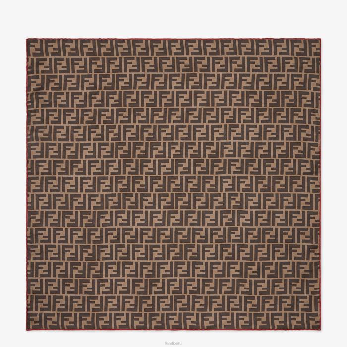 Fular cuadrado confeccionado en sarga de seda, con motivo ff all over estampado en tonos negros y marrones. acabado con borde rojo en contraste.