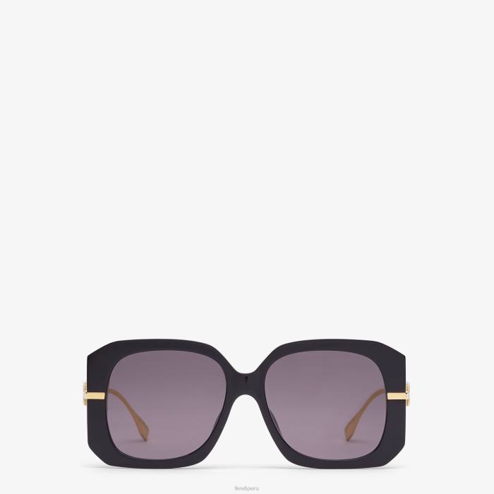 Gafas de sol fendigraphy cuadradas extragrandes en acetato negro, inspiradas en el bolso hobo. patillas con maxi letras fendi de metal dorado en línea. lentes grises degradados.