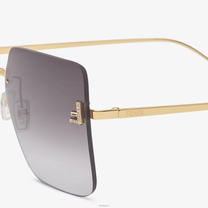 Primeras gafas fendi cuadradas extragrandes en metal dorado. Lentes grises degradadas adornadas con micro f en cristales. almohadillas nasales ajustables.