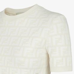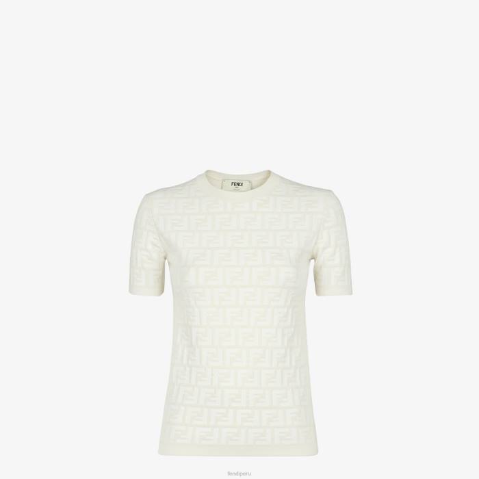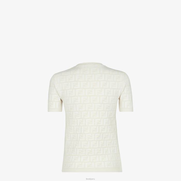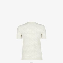 Jersey de manga corta y cuello redondo. confeccionado en punto de viscosa blanca con intarsia con motivo ff por toda la prenda.