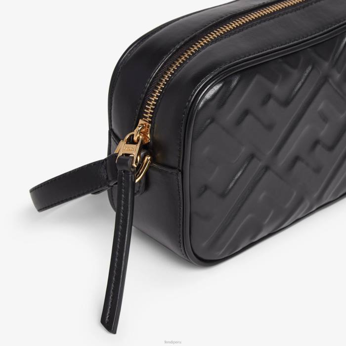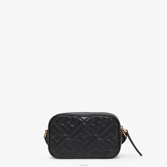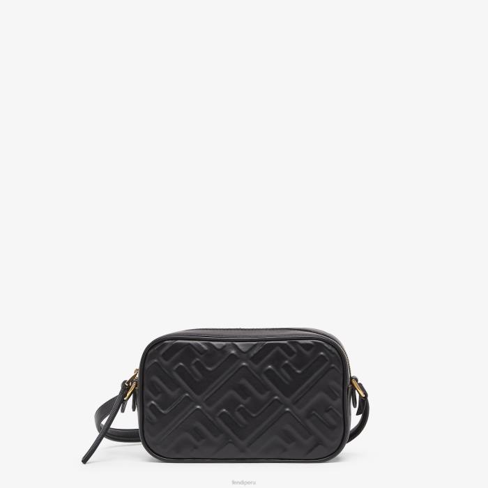 Minibolso de silueta cuadrada, confeccionado en piel de color negro con motivo ff de textura tridimensional. cierre de cremallera.