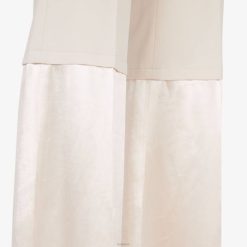Pantalón largo estilo sastre con bolsillos laterales y raya pantalón. Cremallera oculta y cierre de gancho. Confección en gabardina de lana beige, con aplicación de viscosa fluida del mismo color en el bajo.