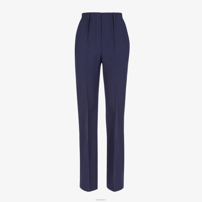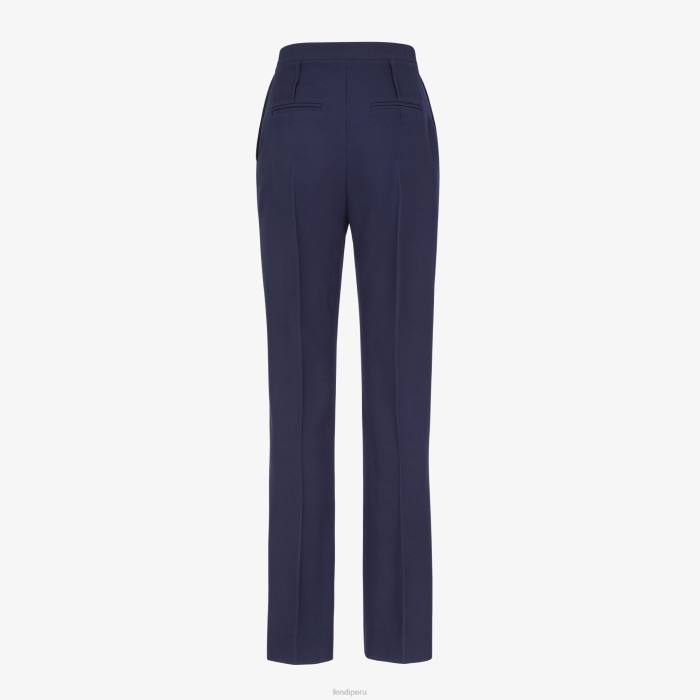 Fendi mujer pantalones de lana grano de poudre 2LH8E1204 vestir azul
