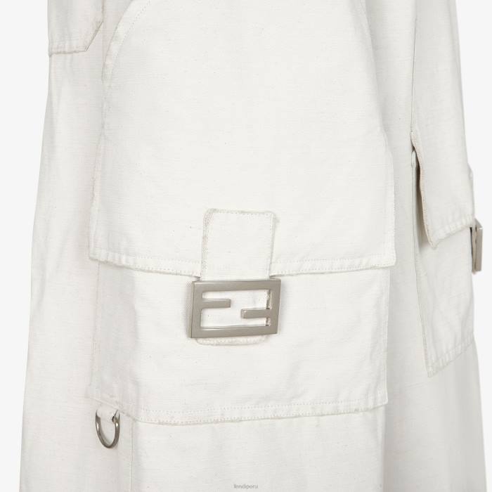 Pantalones cargo cortos de talle medio-bajo. Pierna ancha y de corte recto. Cierre oculto con botón y cremallera. Este modelo, que forma parte de la edición limitada de Fendi by Marc Jacobs, está confeccionado en lona de lino y algodón de color blanco tiza. personalizado con bolsillos de parche contorneados en la parte delantera y hebillas baguette metálicas ff.