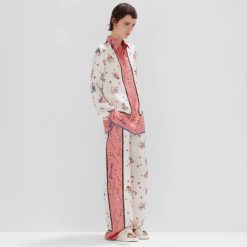 pantalones de pijama fluidos. cinturilla elástica y bolsillos laterales. Confeccionado en sarga de seda en color rosa y blanco. personalizado con un estampado integral con motivo astrológico fendi.