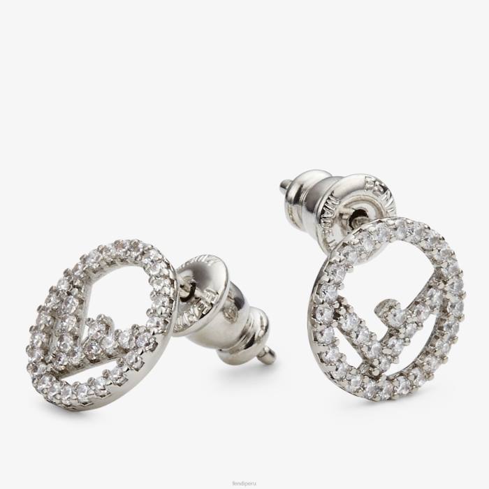Pendientes pequeños con forma del logo f is fendi. cierre de mariposa. realizado en metal con acabado paladio, engastado con decoración de circonitas blancas.