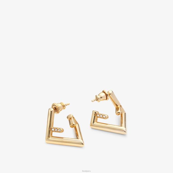Pendientes con el primer motivo de Fendi. fabricado en metal con acabado dorado. adornado con cristales blancos.
