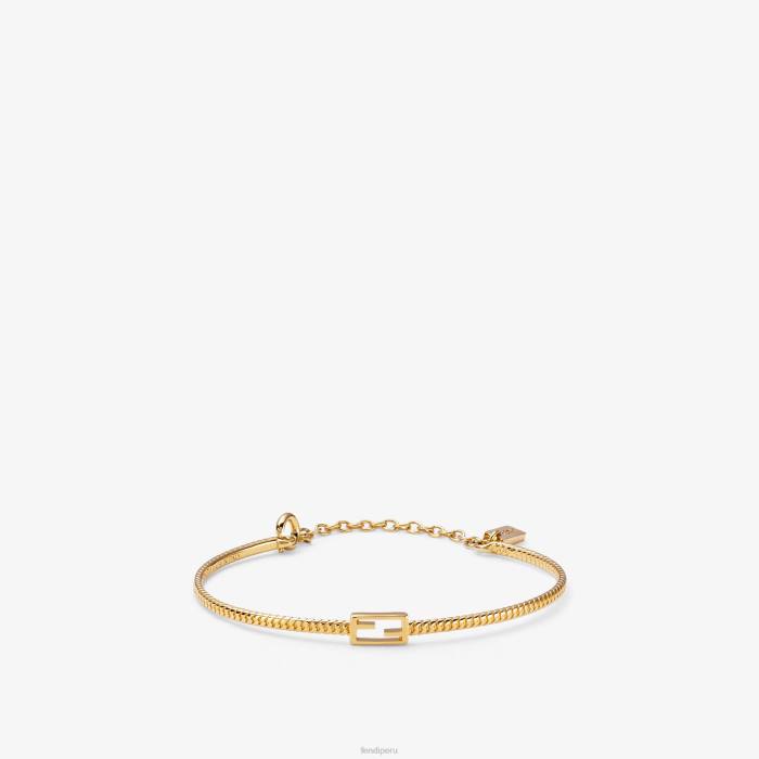pulsera con cadena de eslabones y motivo baguette ff. cierre de clip. fabricado en metal con acabado dorado.