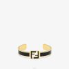 pulsera rígida con motivo ff. sujeción por resorte. fabricado en metal con acabado dorado. esmaltado en tonos negros.