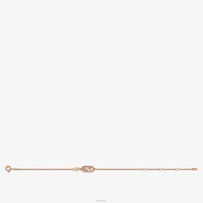 brazalete delgado con motivo fendi o’lock. Cierre con pequeño clip. Realizado en metal con acabado en oro rosa. decorado con cristales color champagne.