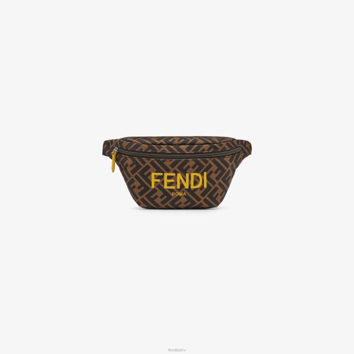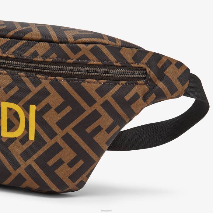 riñonera de nailon ff color tabaco y estampado fendi roma amarillo.
