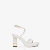 Sandalias baguette con bandas ligeramente acolchadas y tira cruzada en tobillo y arco. Confeccionado en piel napa color beige. tacón con motivo baguette ff de metal dorado.