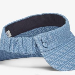 Gorro de ala ancha confeccionado en algodón efecto denim y micro motivo ff de jacquard azul. adornado con borde con flecos.