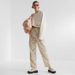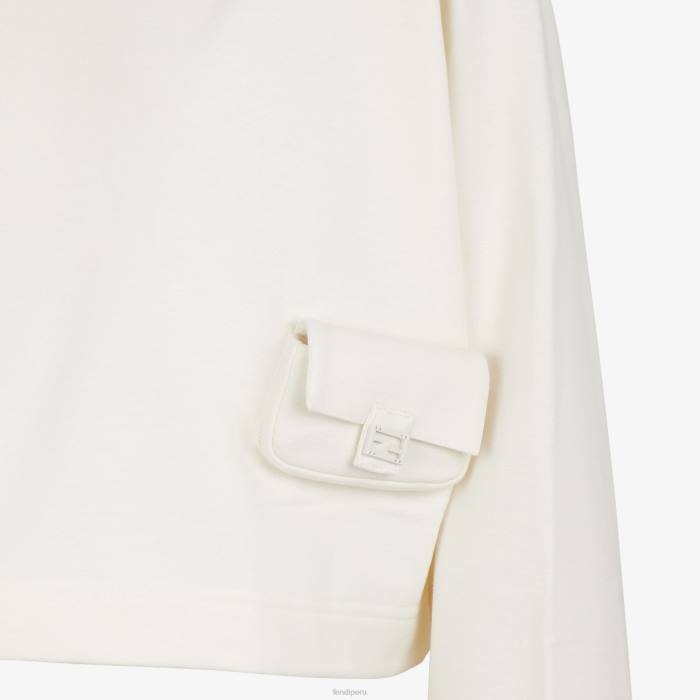 Sudadera corta de gran tamaño con mangas largas y escotadas. confeccionado en jersey de algodón blanco. decorado con minibolso baguette a juego aplicado en el bajo.
