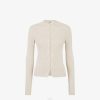 Jersey entallado de manga larga y cuello redondo. confección en viscosa beige en punto de canalé.