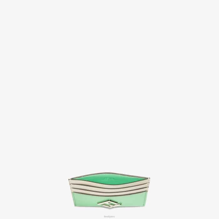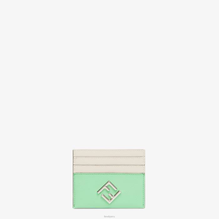 Cartera ff de diamantes con logo ff en diagonal, compartimento central y seis ranuras para tarjetas. Realizado en piel blanca y verde. Artículos metálicos con acabado en paladio.