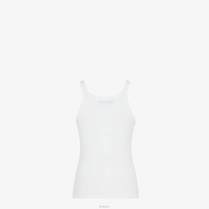 top ajustado sin mangas. Confeccionado en punto de algodón blanco con punto de canalé. decorado con un logo de fendi roma bordado en la parte delantera en negro.