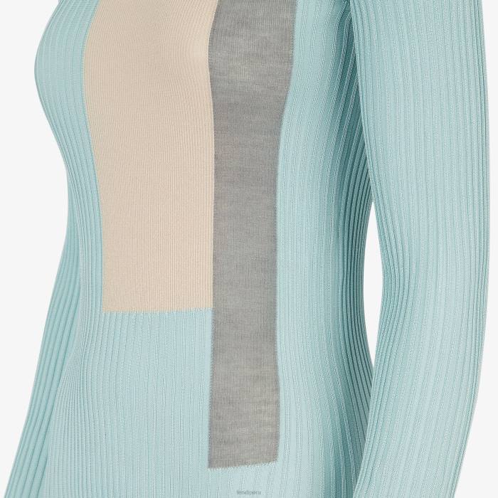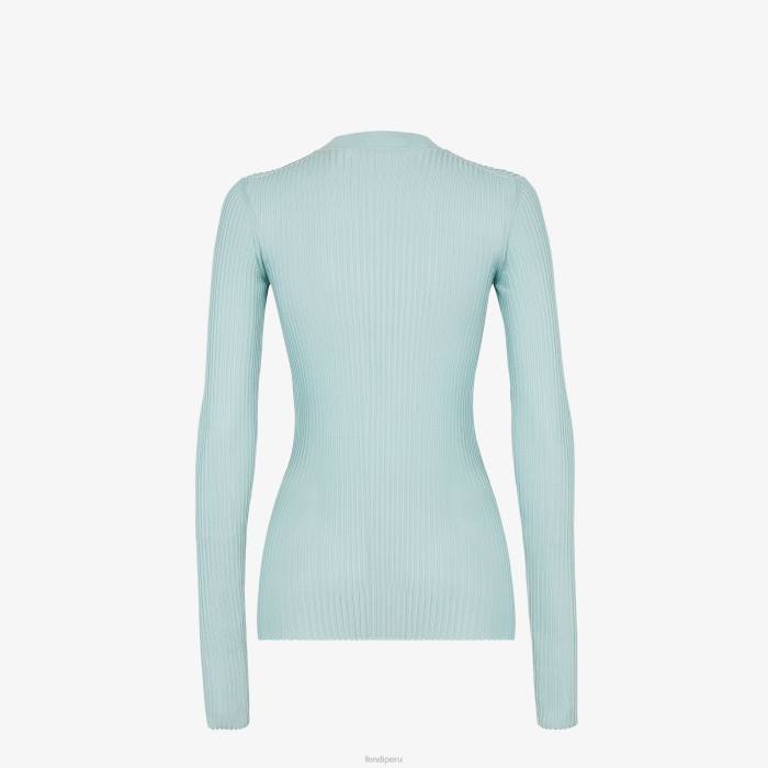 Fendi mujer top de viscosa y seda 2LH8E964 vestir azul claro