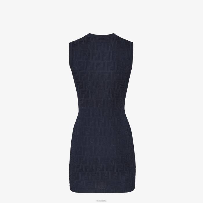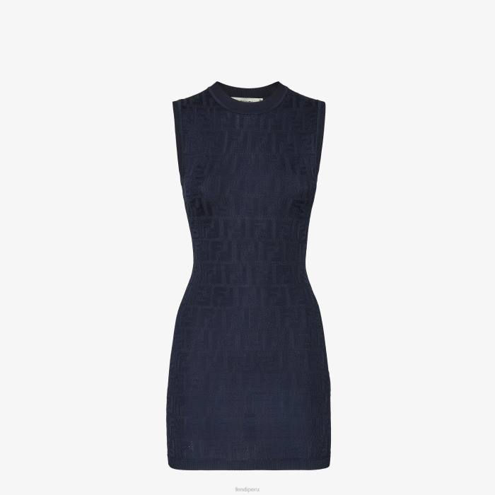 Vestido corto ajustado sin mangas. Confeccionado en punto azul de viscosa y algodón ecológico con motivo ff por toda la prenda. acabado con bordes acanalados.