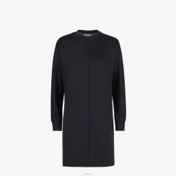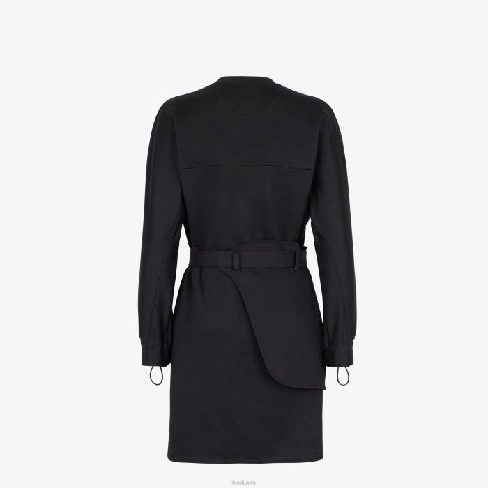 Vestido corto estilo sudadera con escote redondo y manga larga. La prenda presenta un cinturón extraíble con peplum lateral y bolsillo ribeteado. Hebilla fendi o’lock de metal con acabado dorado. Confeccionado en suave jersey negro.