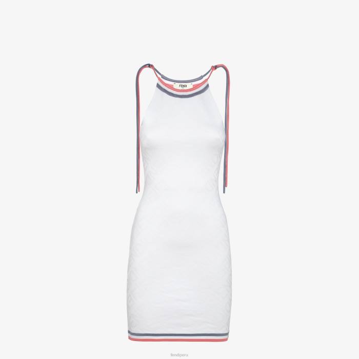 Vestido corto sin mangas con cuello halter. equipado. confeccionado en punto de viscosa blanco con intarsia con letras de espejo fendi del mismo color.