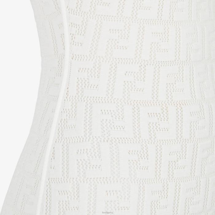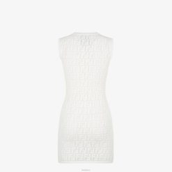 Vestido corto ajustado sin mangas. Confeccionado en hilo de viscosa blanca con motivo ff por toda la prenda. forro a juego.