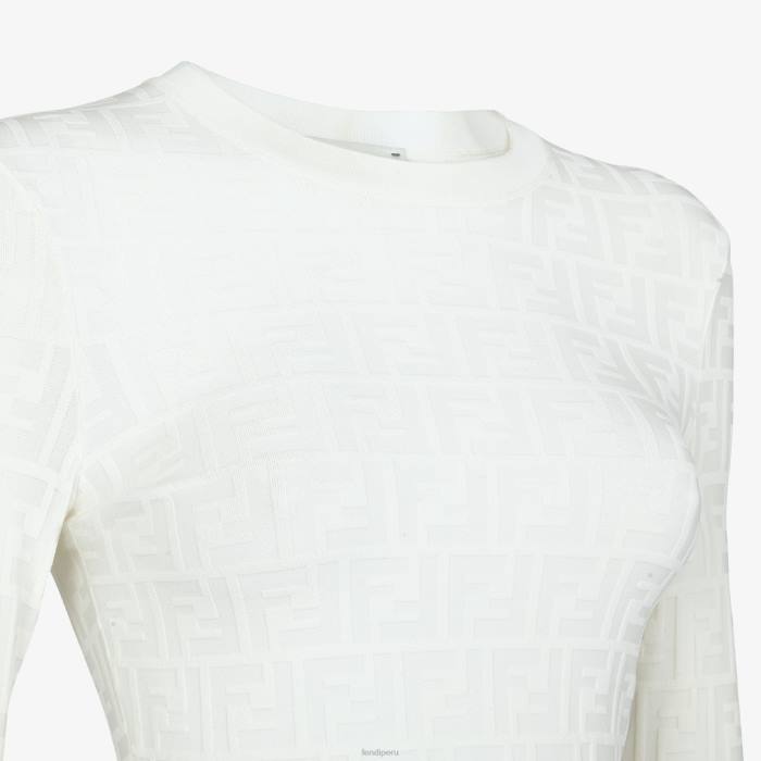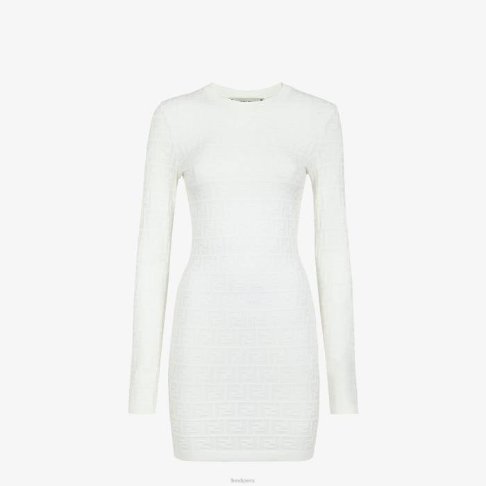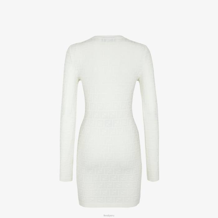 Vestido corto de manga larga y cuello redondo. equipado. Confección en punto de viscosa blanca con motivo ff en relieve por toda la prenda.