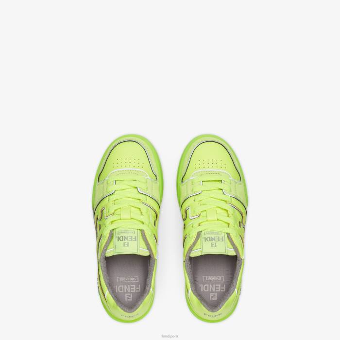 Zapatillas Fendi Match con cordones en piel amarillo neón con detalles de ante tono sobre tono. rematado con motivo ff en relieve y ribetes en contraste. suela de goma con inscripción fendi en el lateral.