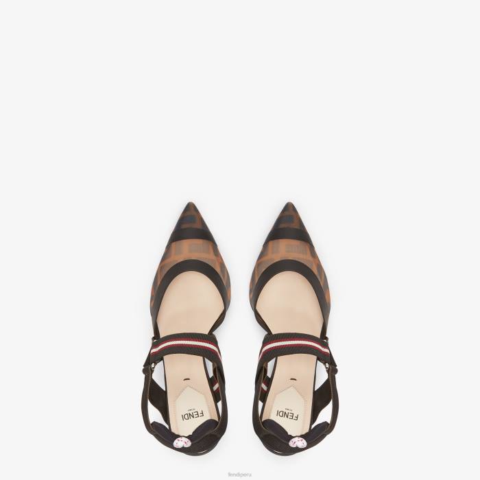 Fendi mujer zapatos destalonados de tacón alto de malla multitech 2LH8E1384 zapatos marrón