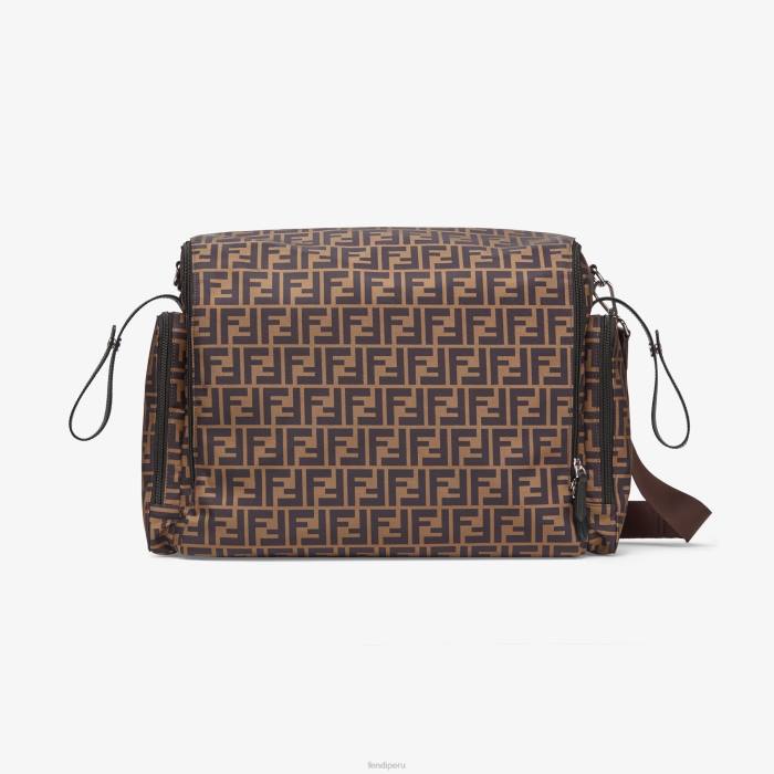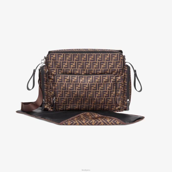 Bolso cambiador de nailon con logo ff por toda la prenda en tonos tabaco. con bolsillos y correa ajustable.