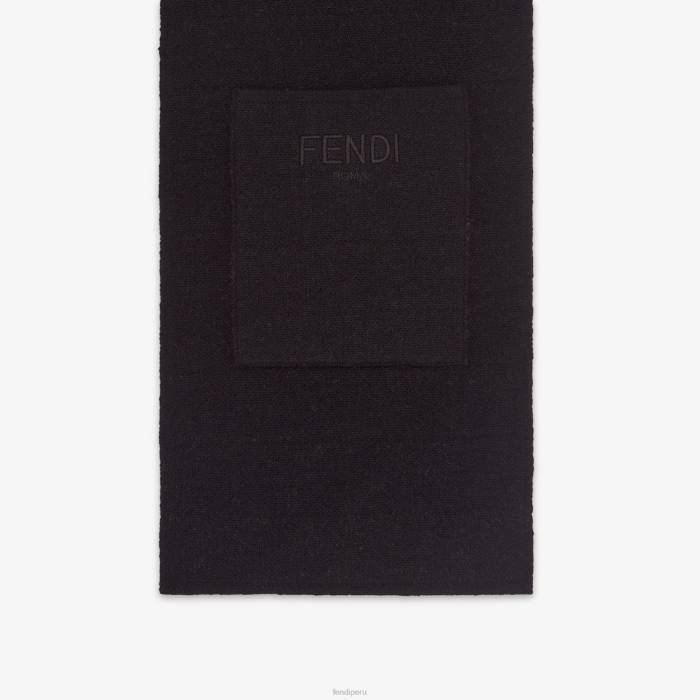 Bufanda junior de lana y cachemira. negro por un lado, con bolsillo grande y bordado fendi roma tono sobre tono, con logo ff íntegramente negro y marrón en el otro.