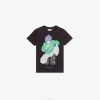 Camisa junior de manga corta azul oscuro con detalle del logo ff tono sobre tono, botones delanteros y bolsillo en el pecho con bordado fendi roma blanco.