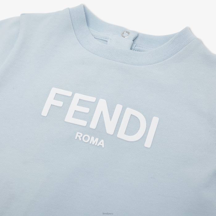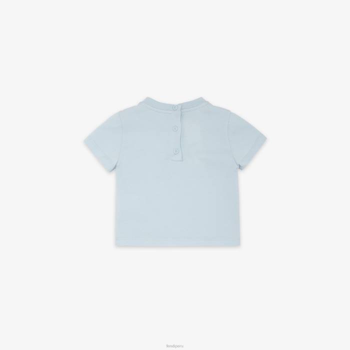Camiseta bebé de punto azul claro con estampado fendi roma blanco.