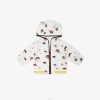Camiseta para bebé de punto blanco con logo ff lila en el cuello.