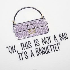 Camiseta junior de punto blanco con bordado de lentejuelas baguette lila en la parte delantera.