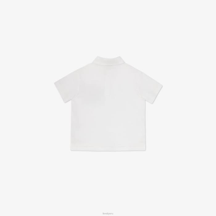 Camiseta junior estilo polo de punto blanco con bolsillo en el pecho de nailon azul marino y bordado fendi blanco.