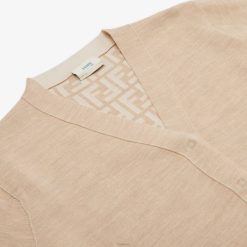 Cárdigan junior de punto beige con bordado fendi roma en la parte delantera.