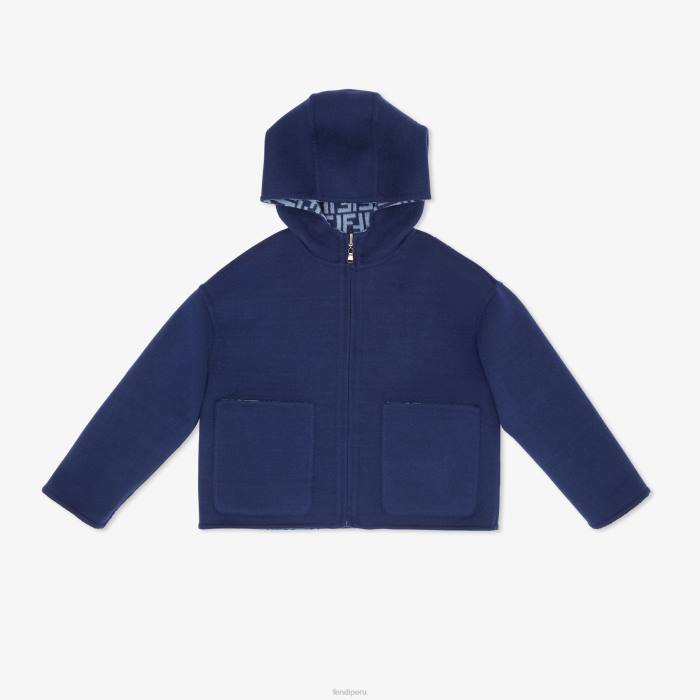 Fendi niños chaqueta de paño de lana de doble cara con logo 2LH8E2851 vestir azul