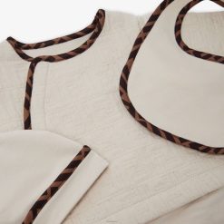 Conjunto para bebé de algodón acolchado ff tono sobre tono beige con babero, gorro y pelele con cierre frontal y borde con logo ff estampado.