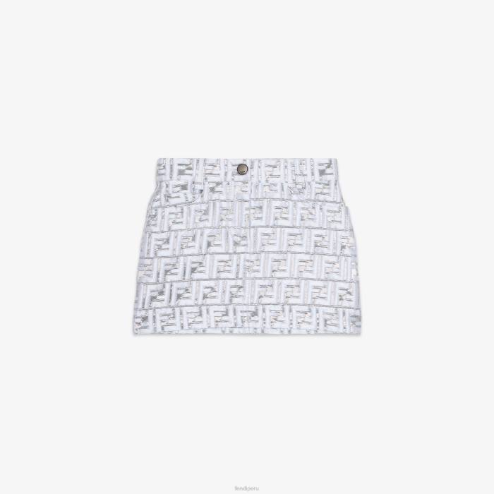 Minifalda junior en jacquard plateado con logo FF por toda la prenda.