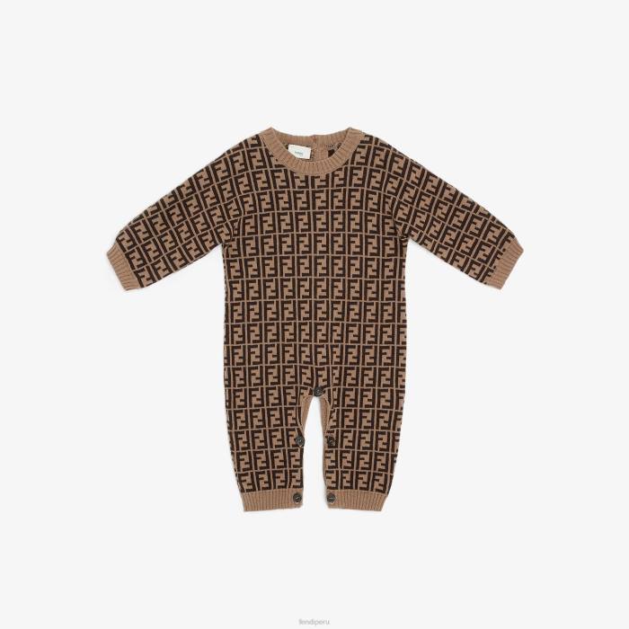 Mono de algodón y cachemira con motivo del logo ff en color tabaco por toda la prenda.