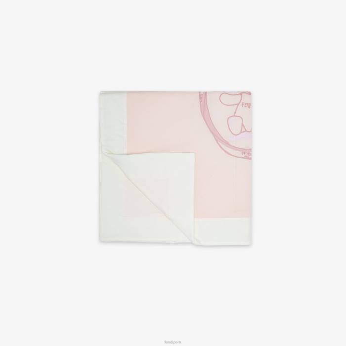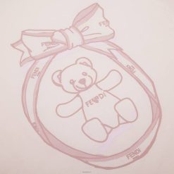 Manta de bebé de punto rosa con bordes blancos y estampado de ositos Fendi tono sobre tono.