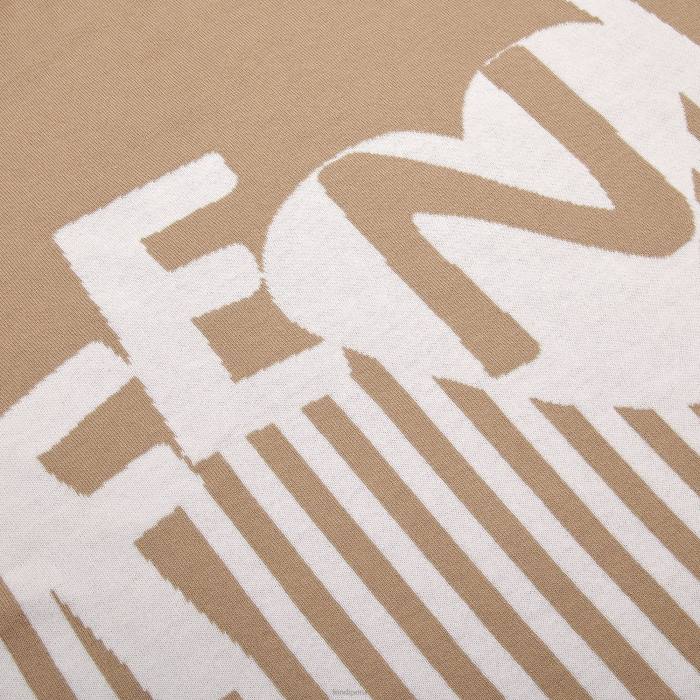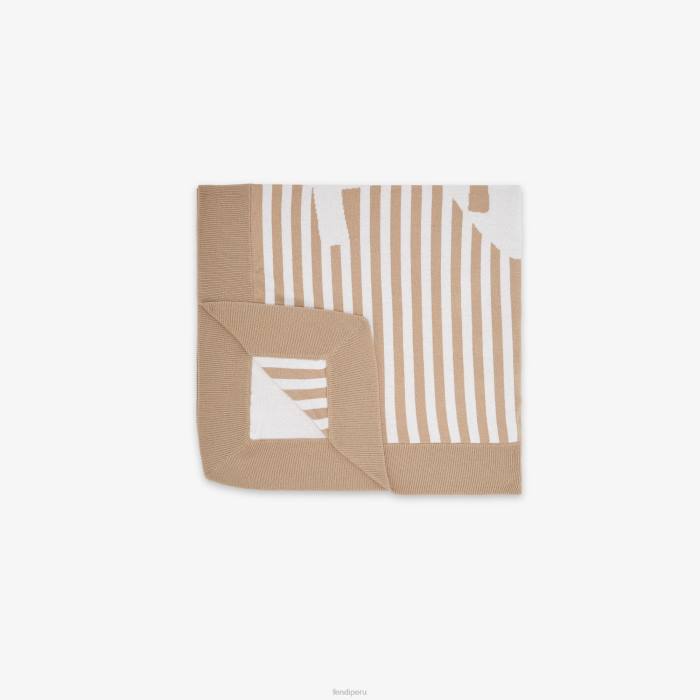 Manta para bebé de algodón y cachemir beige con intarsia de la inscripción fendi a rayas blancas y beige.