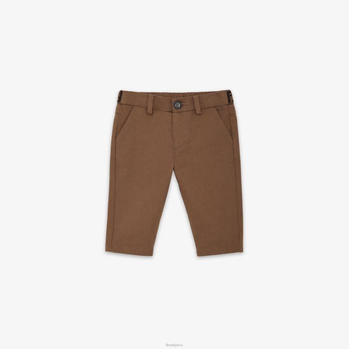 Pantalón de bebé de gabardina marrón con elástico con logo ff tabaco en la espalda.