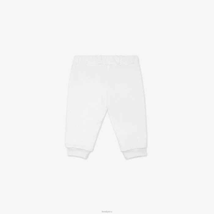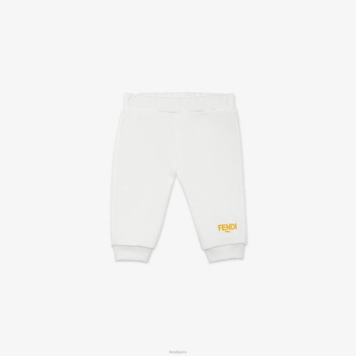 Pantalón jogging para bebé de felpa blanca con estampado fendi roma amarillo en el tobillo.