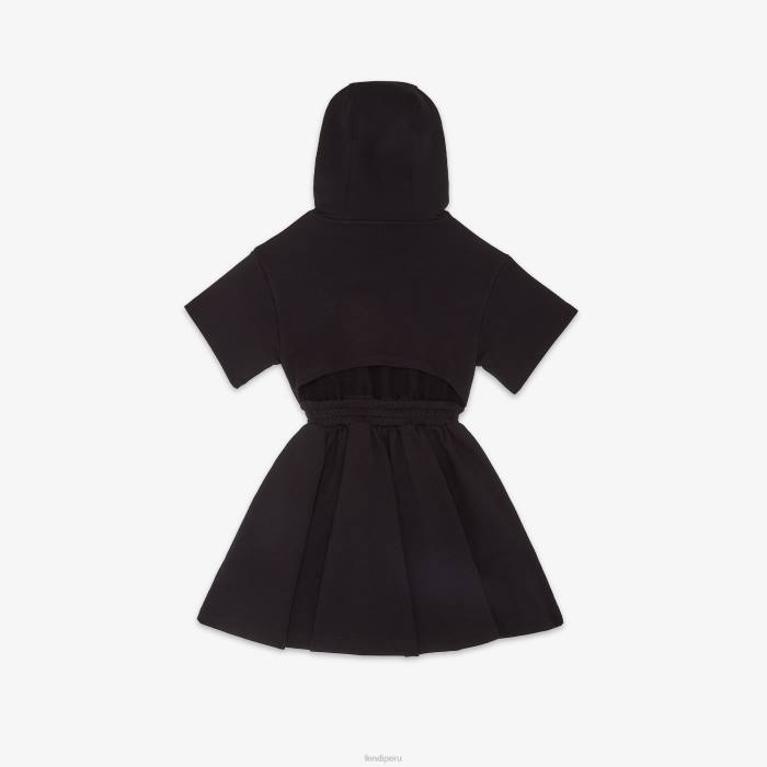 Vestido junior de forro polar, con capucha y cinturilla elástica. recorte en la espalda y estampado fendi roma blanco en la parte delantera.