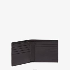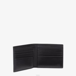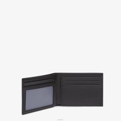 Fendi hombres cartera plegable de cuero con firma de dólar estadounidense 2LH8E2615 accesorios negro