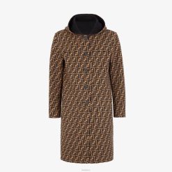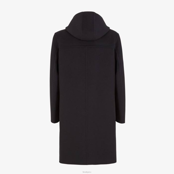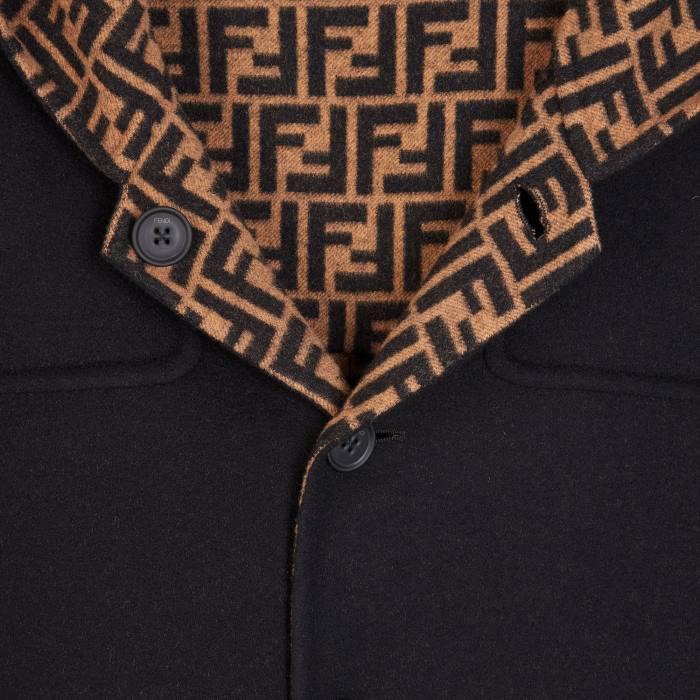 Abrigo reversible con capucha. Bolsillos a ambos lados y cierre frontal con botones. hecho de lana negra. forro con motivo ff por toda la prenda.