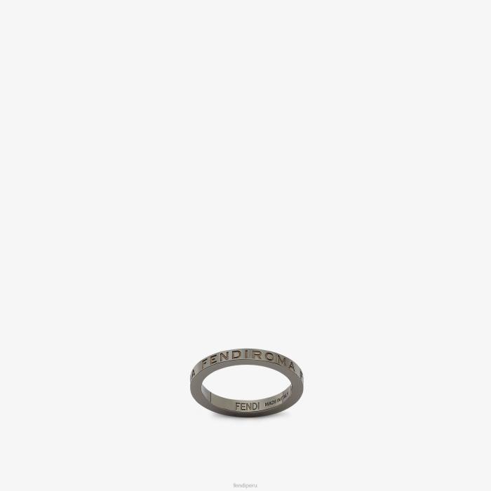 anillo con grabado fendi roma. fabricado en metal con acabado de rutenio ultra negro.